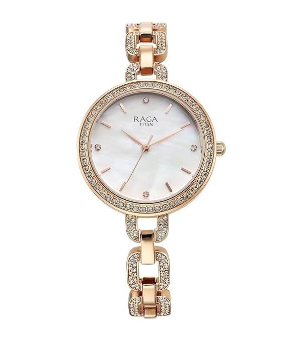 Titan Raga Showstopper Quartz Analog Mother of Pearl Dial Metal Strap Watch for Women-NS95272WM01