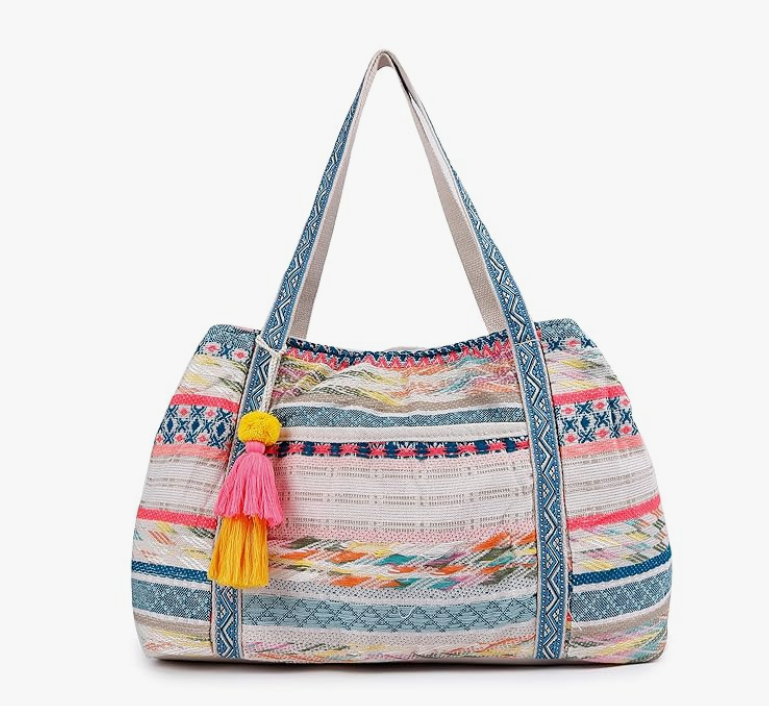 ASTRID Spacious Tote Bag With Magnetic Closure And Tassels (MULTICOLOR)